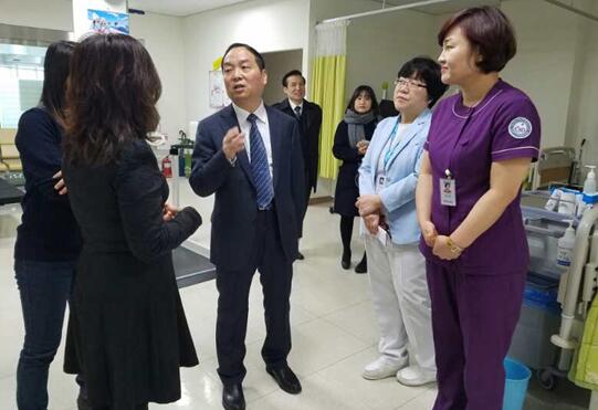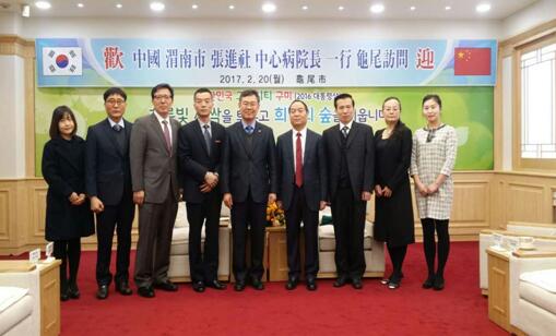 在龟尾市最大的医院-江东医院,双方介绍了医院的发展情况。出访团参观了医院的体检科和肾病管理科,详细了解了该院体检及肾病透析病人的管理及收费情况,会谈在融洽和谐的气氛中进行。