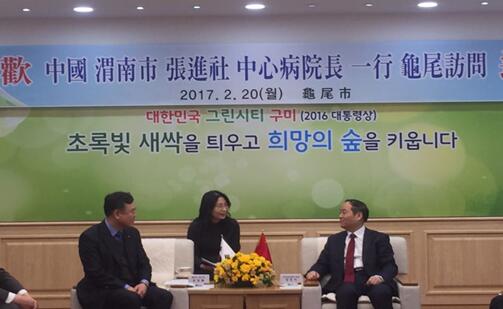 出访团抵达渭南市友好城市龟尾市,受到龟尾市副市长金重权先生的热烈欢迎。金市长与各位代表进行了真诚、友好的交流,了解了渭南市近来的发展情况。代表团团长张进社院长介绍了此次出访考察的意向,并向金市长转达了渭南市市长的亲切问候。