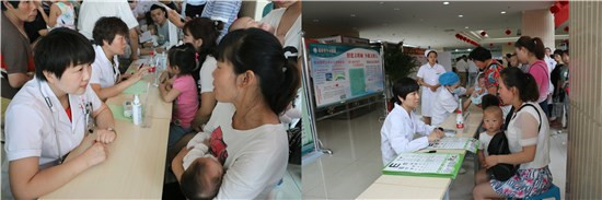 早上7点多,就有家长带着孩子提前来等着专家们,儿科贺双忍主任、护士长杨亚萍一大早也来到现场。8点,我院儿科、新生儿科、儿保科、眼科、口腔科、心理咨询科的专家们在门诊大厅开始义诊。活动现场,咨询的队伍排成一条长龙。有被妈妈抱在怀里的小婴儿,有被爸爸牵手的大儿童。家长们不停地问着各种问题:“我家孩子吃饭不好,是不是有厌食症?”、“我们宝宝经常晚上干咳呕吐,怎么办?”、“手足口病怎么预防?”、“孩子性格怪异,该怎么疏导?”等等。家长们把这一堆的问题都抛给专家们,迫切的想从专家哪里寻求到答案。我们的专家一一耐心解答,直到家长们得到满意的答案为止。现场还有医护人员为孩子们进行身高、体重、视力、骨密度等检查。