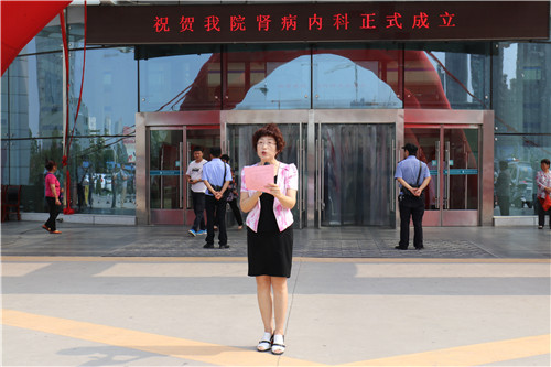 6月16日上午,我院肾病内科成立典礼在门诊楼前举行。市卫计局张荣岗副局长、张进社院长、鲁海燕书记等院领导及部分临床医技,行政科室负责人参加了典礼。典礼由黄慧玲副院长主持。