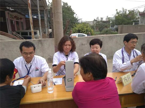 义诊现场,来自富平县医院、张桥镇卫生院的内科、外科、耳鼻喉科、检验科专家及我院老年病、血液内科周淑亚主任医师、赵挺副主任医师、感染性疾病科李红兵副主任医师、李永涛主治医师、田园住院医师等共10余人组成医疗专家组,耐心解答群众疑难问题,开展了常见病、多发病的诊疗及用药指导;发放了健康教育宣传材料。同时,专家组还为村民免费进行血糖、血压测量,我们的医务人员热情地接待每一位就诊群众,耐心解答每一位就诊群众提出的问题,普及医学常识和健康知识,引导群众健康就医,并通过摆放展板、发放资料,向群众宣讲扶贫政策等方式开展义诊活动,受到了群众的一致好评。