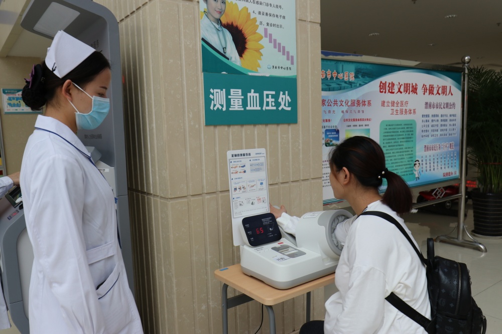 近日,我院门诊大厅一楼导医台西侧、二楼导医台西侧均增设全自动电子血压计,方便前来我院就诊的各位患者自行测量血压。