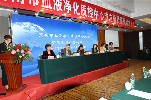 10月14日上午,由我院主办的渭南市血液净化质控中心成立暨肾脏病诊治论坛顺利举办。陕西血液净化省质控中心主任蒋红利、交大一附院肾脏病医院院长尹爱萍、渭南市卫计局医政科科长李娟、我院焦建雄副院长、医务科副科长刘韬及渭南地区血液净化相关专业医务人员百余人参加了成立仪式和论坛。