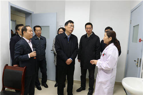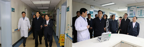 魏增军副省长一行首先来到门诊大厅,张进社院长详细介绍了我院的基本情况以及大厅的各种便民设备和大病医保服务窗口,魏副省长对我院的便民设施表示赞赏。