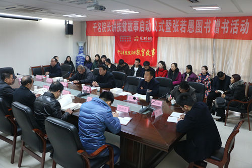 为了贯彻落实中共中央关于打赢脱贫攻坚战的决定,深入全面贯彻落实党的十九大精神,落实健康扶贫要求。12月15日,千名医院院长讲扶贫故事启动仪式暨张若愚图书赠书活动在我院209会议室举办。