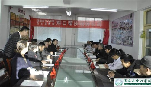 在“对口帮扶”座谈会上,我院焦建雄副院长表示,在市政府、市卫计局的领导下,我院领导班子始终高度重视我市县级医院医疗卫生事业的发展,我院全体员工也将饱有高度的热情投身于基层医疗事业的建设中。此次“对口帮扶”行动,针对白水县医院实际情况,我院多次召开研讨会,制定对白水县医院的重点专科建设、人才培养、院前急救、远程医疗等方面做出了具体帮扶计划,确保在结对帮扶工作中取得良好成效。