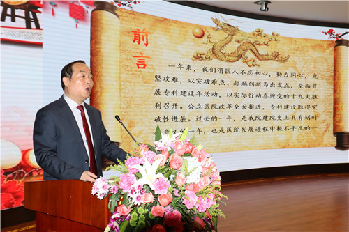 张进社院长做2017年度全院工作总结,安排部署2018年医院工作。2017年,医院领导班子带领全院职工,在市委市政府的关心支持下,在市卫生计生局的正确领导下,以“专科建设年”为抓手,全面突破,创新超越,医院团队建设迸发能量,内涵建设持续深耕,外延发展硕果飘香。在医院发展的新图景中,有全院干部职工孜孜不倦的身影,有惟生命至上的追求,有同频共振的憧憬。2018年医院将以实现黄河金三角地区“区域医疗中心”为发展目标,以开展“专科提升年”和“文化建设年”两个主题助推医院创新,以“三大革命”、“八个全面”提升措施为抓手,实现医院各项工作跨越式发展。
