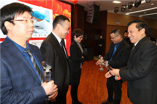 2017年,是医院开拓务实,成绩斐然的一年;是不断成长,亮点纷呈的一年;是创新驱动,捷报频传的一年。医院全体干部职工,用集体的智慧和汗水,谱写了医院发展的一路芳华,医院各部门、各岗位涌现出一批先进科室和个人。大会对2017年度在国家、省、市活动中获奖的团体和个人、最佳规培管理奖、先进教学工作者、优秀学员、最佳学术会议、扶贫先进个人、医疗安全奖、临床路径推进奖、后勤服务优秀班组、184名医德医风优秀个人及173名先进个人、优秀论文、科研立项奖等进行了表彰。其中心内科韩红梅、李军农的《Association of TERT polymorphisms and risk ofcoronary heartdisease in a Chinese Han population》等5篇SCI论文获得优秀论文奖;李军农主任“十三五”项目:基于组学特征谱的H型高血压首发脑卒中分子分型研究、口腔科郭忠军无托槽隐形矫治技术在Ⅲ度深覆合正畸治疗中的临床研究与应用获得科研立项奖;骨二科“手护圈”在“第五届全国医院品管圈大赛陕西预选赛暨陕西省第三届品管圈大赛”中荣获三等奖,并入围第五届全国医院品管圈大赛决赛,获优秀奖等。