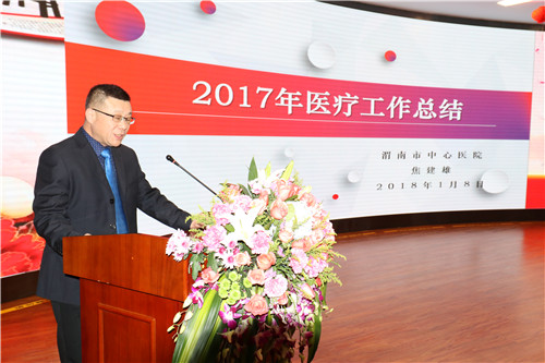 焦建雄副院长汇报了2017年度医院医疗工作,将2017年医疗总体情况做逐一对比说明,对医疗工作中的亮点给予肯定。2018年将以“专科提升年”为抓手,全力促进医院发展。