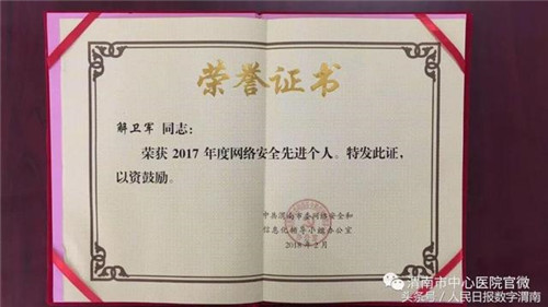 近日,中共渭南市委网络安全和信息化领导小组办公室、渭南市互联网信息办公室联合下发《关于表彰2017年度网络安全专项工作先进集体和先进个人的决定》(渭网信发[2018]8号),对乐鱼手机站入口在2017年度关键信息基础设施网络安全检查工作中做出的突出成绩给予通报表扬。中心医院喜获“2017年度网络安全先进单位”荣誉称号,信息管理科副科长解卫军同志被授予“2017年度网络安全先进个人”。