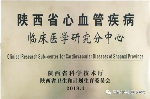 2018年4月12日,我院心血管内科被省科技厅和省卫计委指定为“陕西省心血管疾病临床医学研究分中心”。