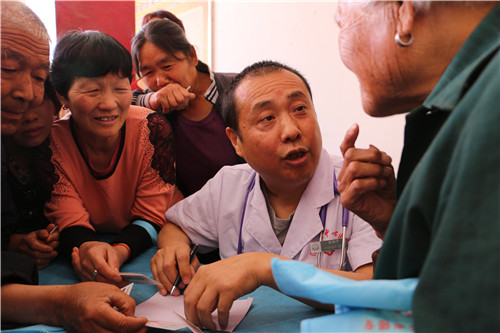 义诊台前,慕名而来的村民自觉排成10多行纵队,医护人员刚一到场就受到村民的热烈欢迎。义诊活动正式开始后,各科医生详细地询问每一位前来咨询的村民,根据他们的叙述进行现场指导,为村民进行健康教育、心理咨询、优化治疗方案,并进行了国家健康扶贫相关政策宣传。