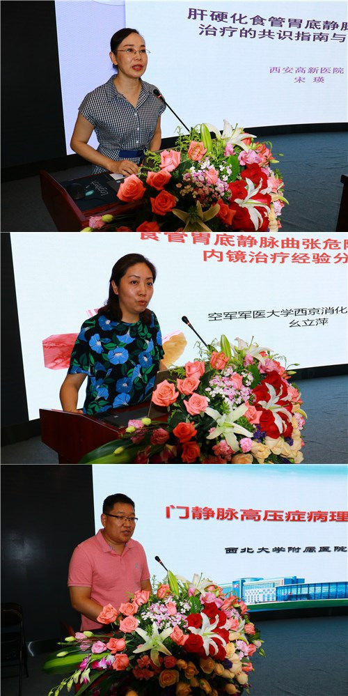 随后,宋瑛教授、许君望教授、幺立萍教授分别就《食胃管静脉曲张共识指南及临床实践》、《内痔的内镜下硬化治疗术》、《食胃管静脉曲张的病理生理学及胃镜下曲张静脉粘堵术》、《食胃管静脉曲出血危险分级及内镜治疗经验分享》作专题讲座。