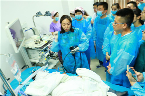 下午,消化内镜中心在手术室的大力支持下,对病人采用无痛全麻,由宋瑛教授、许君望教授、幺立萍教授进行内镜胃食管静脉曲张套扎及硬化手术的操作演示及手把手带教,各医院医务工作者进行观摩学习。