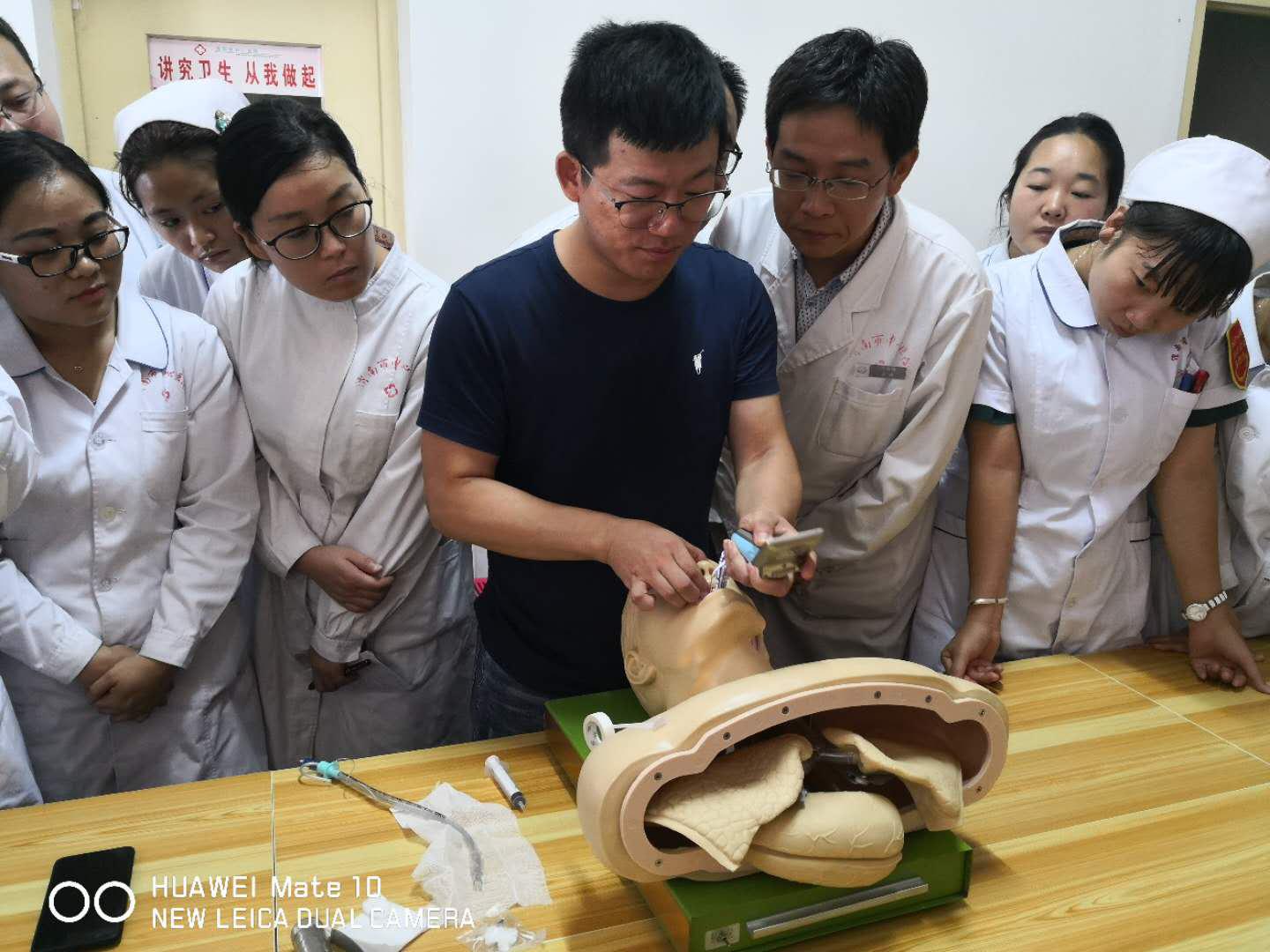 为保证老院区感染性疾病科患者在生命垂危时能得到及时有效的抢救,提高抢救成功率,降低死亡率,8月20日下午,感染性疾病科利用周一下午的业务学习时间,李红兵主任邀请麻醉科关新江主任和雷育华主治医师对全科医护人员进行气管插管术相关理论和操作知识培训。