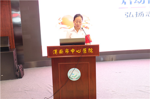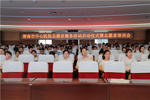 为进一步弘扬“奉献、友爱、互助、进步”的志愿精神,充分发挥志愿者在构建和谐医院、文明医院中的积极作用, 8月21日下午,市中心医院举行了志愿者服务活动启动仪式暨志愿者培训会。会议由党办负责人杨雯琦主持。院级领导、各科室主任及志愿者200余人参加了启动仪式。