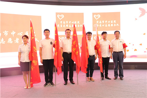 随后,党委书记鲁海燕分别为青年志愿者服务总队及“党员先锋”志愿服务队、“阳光天使”志愿服务队、“门诊爱心”志愿服务队、“控烟”志愿服务队授旗。志愿者代表王纯阳在会上代表全院志愿者进行了表态发言。