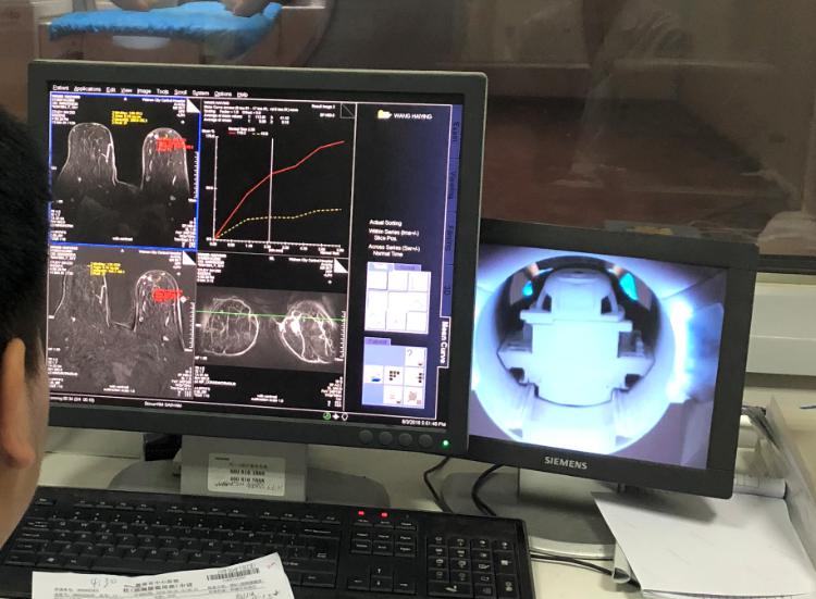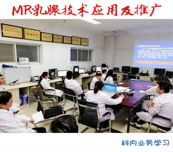 2018年初,医院引进了原装进口西门子磁共振乳腺专用线圈, CT&MR影像诊断科选派优秀骨干在省肿瘤医院进行新业务学习培训,并成功开展乳腺MR检查及诊断,完善了医院乳腺疾病的检查和诊断方法,提高了乳腺疾病的诊治水平,填补了我市在医学影像诊断中的空白。