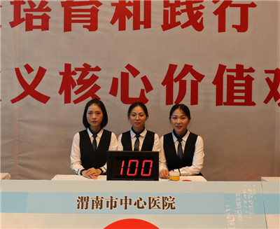 9月21日上午,由中共渭南市委宣传部主办,渭南市文化广电新闻出版社、渭南市创建工作指挥部办公室、渭南市精神文明建设指导委员会办公室协办的“共创全国文明城 建设美丽新渭南”电视知识竞赛决赛暨颁奖典礼举行,市中心医院代表队喜获优秀组织奖。