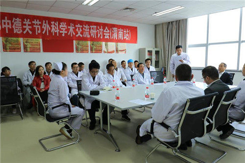 早上8时许,乐鱼手机站入口张进社院长代表医院致欢迎词。张进社院长介绍了乐鱼手机站入口的基本情况及骨科学科的发展,指出此次学术交流给渭南市从事骨科专业的医师们提供了一次全方位、近距离的交流机会,希望大家珍惜机会,提升骨科诊疗水平,造福广大患者。哈根.霍梅尔教授了解了我院关节门诊的业务范围及手术开展情况,对我院关节疾病的开展情况给予了充分肯定。