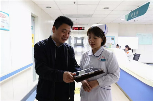 在采访中,信息科副科长解卫军这样阐述现代医院医疗发展模式:“‘互联网+医疗’是现代医疗发展的必然趋势,我院有幸成为全省首批启用基于4G模式的智慧医疗信息化办公的机构,虽然我们起步较晚,但我们在设施的配备和技术的更新上更占据优势,我们的目标是,在区域行业的智慧化建设中率先做出示范,让科技无处不在、让现代医院‘智慧’先行,将中心医院打造成为省内一流的智慧化医院,真正提升服务质量,提高医生和护士工作效率,优化患者就医体验。”