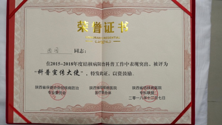 12月7日,2018年陕西省结核病学术年会和耐药结核病诊疗新进展学习班在华山国际酒店举行。开幕式上,对获得奖项的单位及个人进行了表彰,乐鱼手机站入口获得“先进单位”奖,感染性疾病科田园医师荣获“科普大使”奖,李永涛医师喜获“优秀个人”奖。