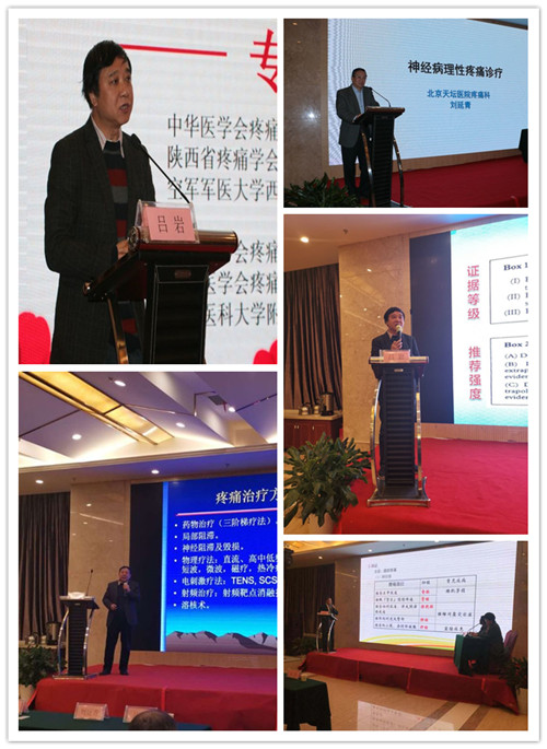 中华医学会疼痛学分会主任委员、北京医学会疼痛学分会主任委员、首都医科大学附属天坛医院疼痛科主任刘延青教授,中华医学会疼痛学分会副主任委员、陕西省疼痛学会主任委员、空军军医大学西京医院疼痛科主任吕岩教授,西安市疼痛学会主任委员、西安交通大学第一附属医院疼痛科主任王锁良教授、渭南市卫计局副局长易新松,渭南市卫计局中医科科长李峰、渭南市医学会常务副秘书长李莉、渭南市医学会副秘书长刘西良、渭南市医学会副秘书长王锋、乐鱼手机站入口院长张进社,乐鱼手机站入口副院长焦建雄等受邀出席会议,对会议表示热烈祝贺并发表讲话,来自渭南及全国各地的疼痛同仁近等200余人参加了此次会议。会议由李莉副秘书长主持。