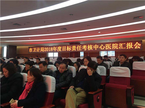 1月24日,市卫计局2018年度目标责任考核工作组一行在党委副书记张西源的带领下对我院2018年度目标任务完成情况进行全面考核测评。院领导班子成员及中层干部100余人参加了会议,会议由院党委书记鲁海燕主持。