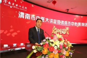 阳春布德泽,万物生光辉。为进一步传承发展中医药事业,浓厚中医药文化氛围,加强中医药学术交流,3月13日,由市卫计局协同市中心医院举办的渭南市中医大讲堂开讲,同时,乐鱼手机站入口名中医馆正式开馆。渭南市委常委、党组成员王心;渭南市卫生和计划生育局党委书记、局长张拴劳;渭南市卫生和计划生育局副局长易新松;医学博士、陕西省名中医、广西名中医王三虎教授;渭南市卫生和计划生育局党政办主任王勇;渭南市卫生和计划生育局中医科科长李峰,乐鱼手机站入口张进社院长及班子成员、辖区各医院领导及中医界同仁400余人参会。会议由市中心医院党委书记鲁海燕主持。