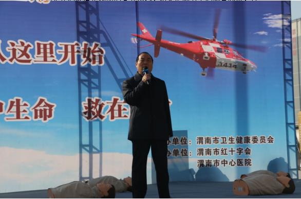 12月3日,由渭南市卫生健康委员会主办,乐鱼手机站入口及渭南市红十字会协办,以“健康中国,从这里开始-守护生命,救在眼前”为主题的大型心肺复苏科普活动顺利举办。此次活动全面向政府机关领导及工作人员普及应急救护知识,传递“人人学会急救、处处保护安危”的观念,提高自救互救能力,切实开展全民初级应急救护培训工作。渭南市卫生健康委员会主任张拴劳、副主任张荣岗、郝国庆、李西京、徐萌新、易新松,乐鱼手机站入口张进社院长及渭南市红会办主任郭维相关科室负责人参加了本次培训活动。