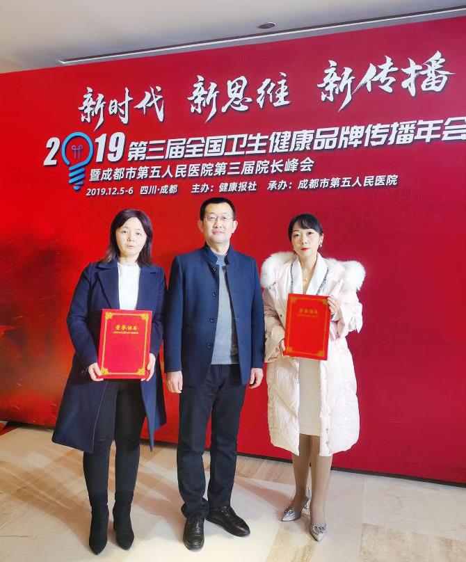 新时代,新思维,新传播。12月6日,由健康报主办,成都市第五人民医院承办,中国生命关怀协会医院人文建设专委会支持的“2019第三届全国卫生健康品牌传播年会暨成都市第五人民医院第三届院长峰会”在成都召开,全国28个省份600余名卫生健康宣传系统工作人员参加。乐鱼手机站入口党委副书记党继革及宣传科主任党淑尽受邀参会并领奖。此次大会上,乐鱼手机站入口院刊——《医苑》获得“院刊院报年度优秀传播案例”,这是医院院刊自创办以来首次参加并获得的国家级奖项。宣传科张瑛获得“年度品牌传播优秀实践者。”