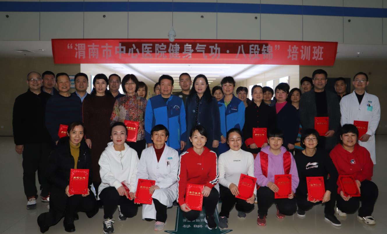 两手托天、左右开弓、摇头摆尾……伴随着优美舒缓的音乐,12月24日下午16时,在乐鱼手机站入口门诊二楼举行了“乐鱼手机站入口健身气功·八段锦”培训班的结业考核。
