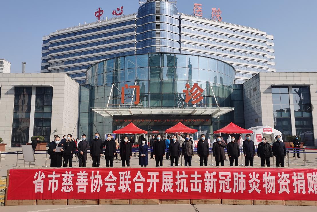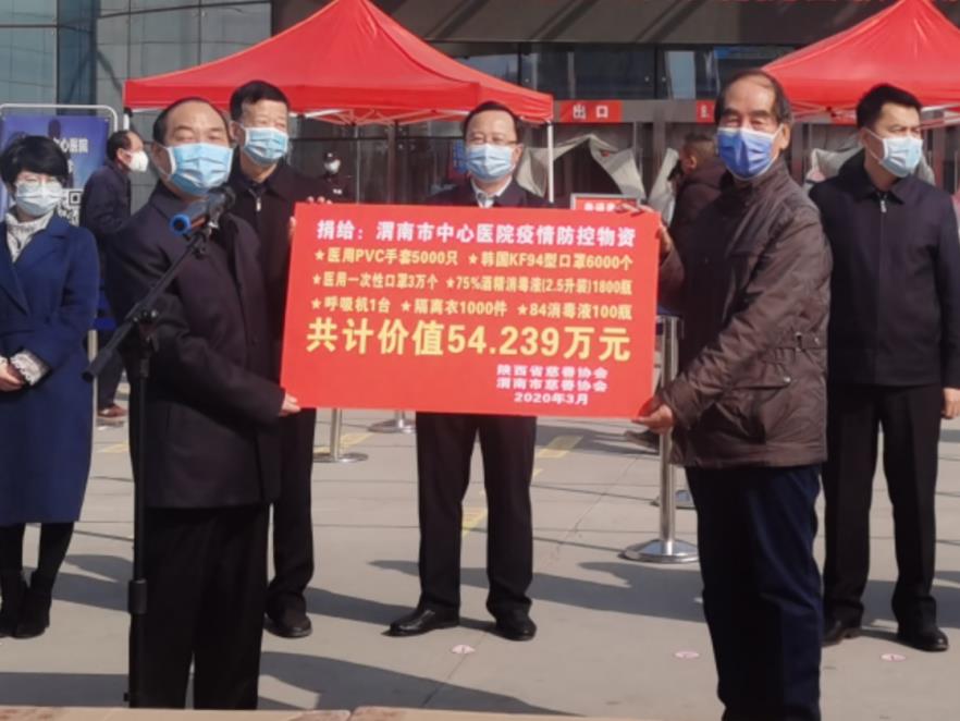 新型冠状病毒感染的肺炎疫情发生以来,乐鱼手机站入口作为渭南市定点收治医院,医护人员一直坚守在防疫一线,得到社会各界的支持和关注。3月5日,省市慈善协会联合开展新冠肺炎物资捐赠活动,上午10时,捐赠仪式在乐鱼手机站入口门诊楼前举行。陕西省慈善协会副会长孙忠信,省慈善协会副会长强萃萍,渭南市人大常委会主任马赟,渭南市政协主席吴蟒成,渭南市委常委、副市长刘凯,渭南市慈善协会会长雷超武,市人大常委会秘书长崔晓民,市政协秘书长张旭斌,市政府副秘书长马道平,省慈善协会组联部副部长王军利,省慈善协会网信部副部长徐宁博,渭南市民政局局长高尚,渭南市卫计局党组成员、副主任易新松,乐鱼手机站入口院长张进社与相关领导及受赠单位代表近百人参加捐赠了仪式,市慈善协会常务副会长薛东江主持启动仪式。