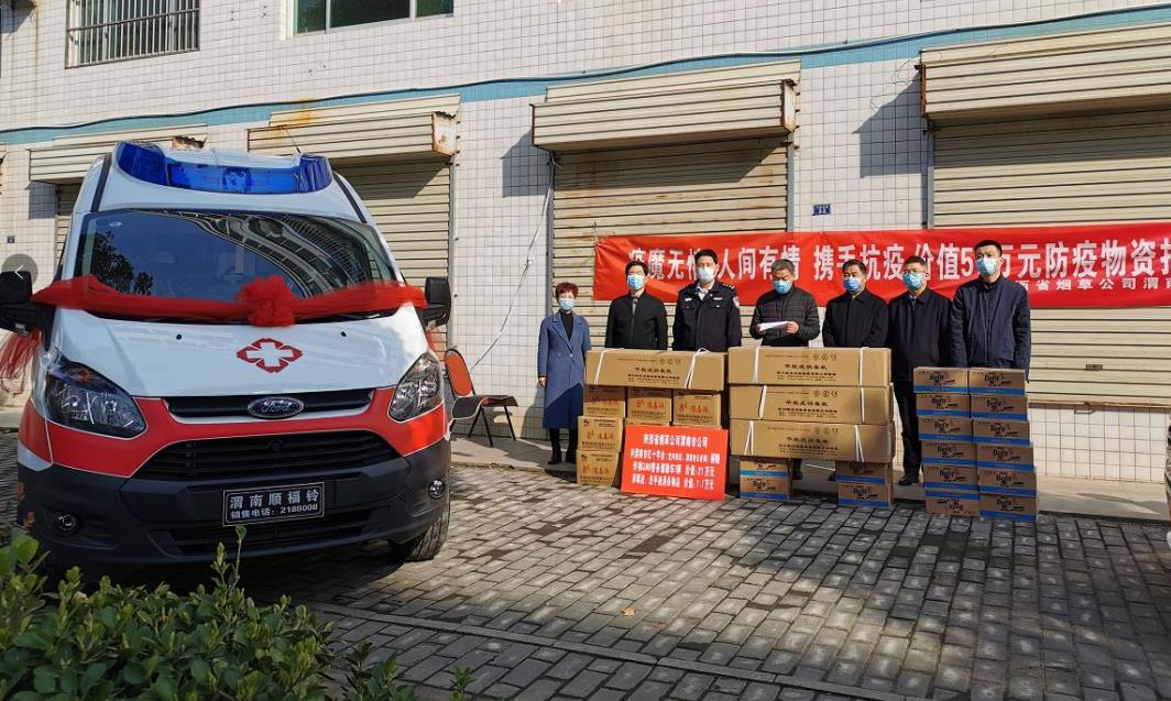 仪式上,市烟草专卖局(公司)向医院捐赠福特救护车一辆,平板式紫外线空气消毒器4台。