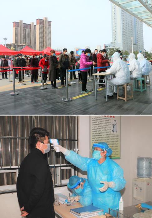 根据疫情形势变化,医院及时组建备用医院、关停部分门诊诊室、开通在线咨询通道。制定疫情防控工作人员轮值表,实行病陪人实名登记制度,凭卡陪护,确保防治工作有序开展。院长张进社率先在全市提出将上呼吸道感染病人和新冠发热病人第一时间进行排查诊治,非发热门诊任何科室不得行任何检查。
