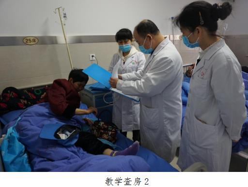科教科主任周东升、内分泌科主任医师丁小炼、急诊科主治医师王二宁分别在外科门诊和内科门诊坐诊,门诊患者高峰期过后,所有专家和张桥镇卫生院、党睦中心医院的医师共同对病房重点患者进行了教学查房。
