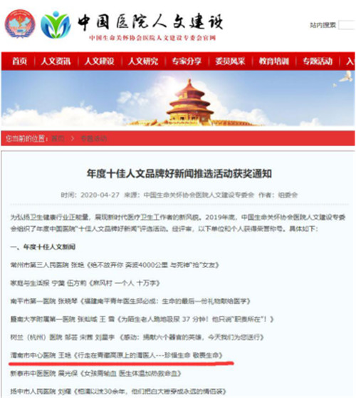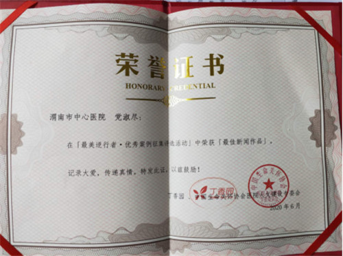近日,乐鱼手机站入口宣传科捷报频传,获得多项荣誉。其中在中国生命关怀协会医院人文建设专委会组织的《2020年中国医院人文品牌峰会》中,获得“人文创新团队”“年度十佳人文品牌好新闻”,在丁香园、生命关爱协会医院人文建设专委会举办的【最美逆行者·优秀案例征集评选活动】中荣获“最佳新闻作品”。