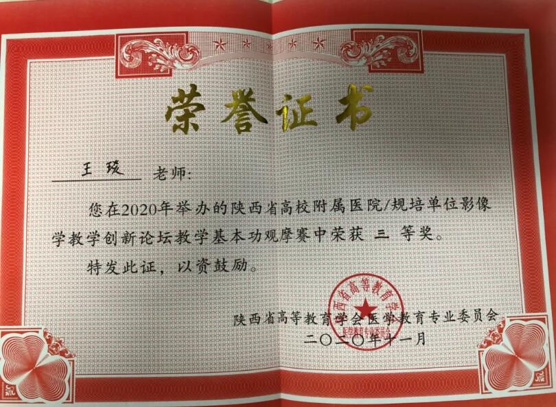 市中心医院科教科和影像科对此次教学比赛高度重视。备战期间,CT&MR刘康主任现场督导,选手提前反复试讲,沉着应战。经过前期科室推荐和充分准备,影像科青年医师王琰参加比赛,取得三等奖优异成绩。