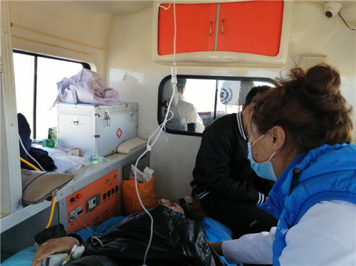 8月的一天,同时来了3个车祸病人,经过近3个小时的全力抢救,其中2名伤者包扎清创处理后继续留院观察,有1名伤者因双侧多发肋骨骨折、双侧血气胸、创伤性湿肺、骨盆粉碎性骨折伴有失血性休克,病情复杂危重,县医院技术和血源都不能具备救治该患者的条件,该名伤者需要立即转至1500公里外的拉萨西藏军区总医院进行救治。转运路途遥远,患者病情危重,转运过程随时可能出现生命危险,侯峰强主动请缨,要求护送患者,转运前他根据伤情,使用气管插管并自制闭式引流瓶对伤者进行了双侧胸腔闭式引流术,并准备了充足的药品和抢救设备,便向远在1500多公里的西藏军区总医院出发,途中处理多次危急情况,得助于兄弟医院的接力帮助,经过日夜不停歇赶路,最终在24小时后,将患者安全送到西藏军区总医院进行进一步的抢救治疗,一场生命接力,彰显医者大爱。