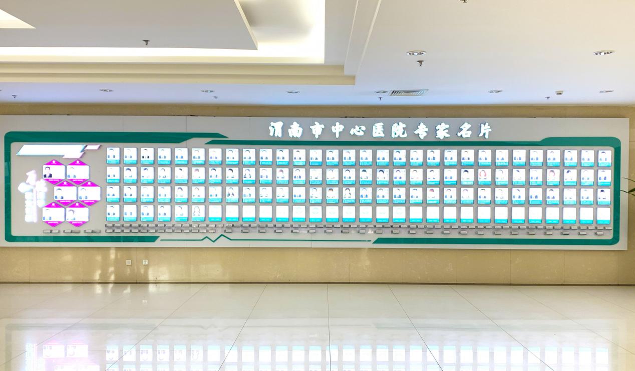 专家名片灯箱高2.3米,长10.05米,为卡式柔布灯箱。包含各个科室在内102位资深专家照片及专业特长让人眼前一亮,一种亲和、温暖、美轮美奂之感油然而生。