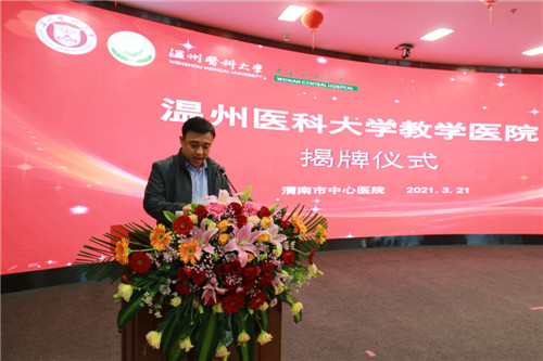 揭牌仪式上,市卫健委副主任徐萌新在致辞中指出,此次市中心医院与温州医科大学达成战略合作协议,是助力中心医院发展的重要机遇。通过建设温州医学大学教学医院,在人员、技术、科研、产出等方面深化往来,以合作共赢为共识,以增进群众健康福祉为目标,合力打造健康中国建设院校合作示范区和试验田,辐射带动渭南地区乃至整个黄河金三角区域医疗卫生行业跨越式发展。