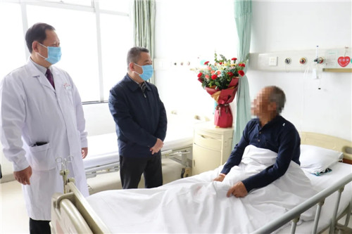 术后,院领导到病房看望老人家。“这么大年龄,真没想到还能做心脏手术,再也不胸闷气短了,在家门口就完成了这么大的心脏手术,没有任何痛苦,这是咱们渭南人民的福气啊!”张爷爷激动地告诉大家。