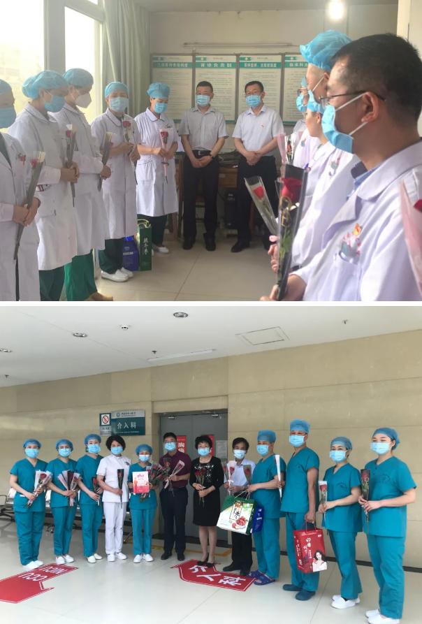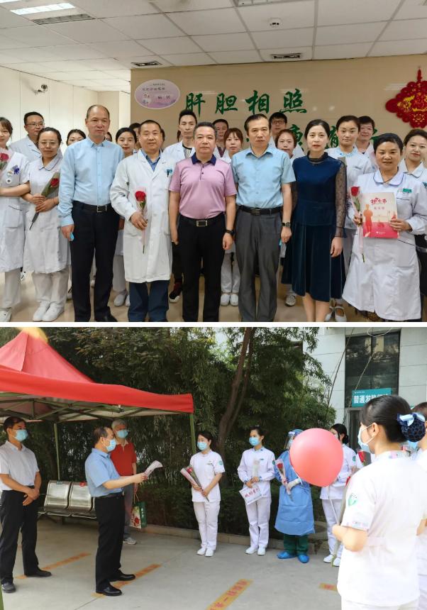 缤纷五月,繁花似锦。5月12日,一大早,市中心医院院领导和职能部门负责人带着满满的祝福,到部分临床、医技科室,重点部门、急诊科、发热门诊、门急诊预检处慰问,为护理人员送上节日的祝福。