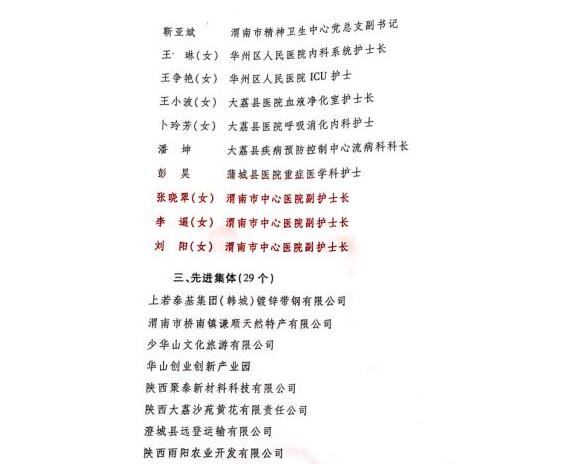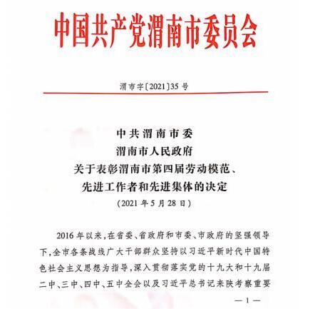5月31日,渭南市第四届劳动模范、先进工作者和先进集体表彰大会召开。乐鱼手机站入口护理工作者张晓翠、刘阳、李遥受到表彰。