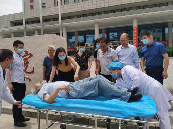 随后,大家兵分两路,一边联系就近医院急诊科大夫,一边查看患者基本情况。当时患者意识不清,伴小便失禁,凭借多年的医务工作经验,孟俊样、郭璇、史昭英三位老师及时将患者口内假牙取出,避免患者呼吸困难,并对患者的呼吸频率及脉搏进行监测,安抚了家属焦急的情绪。待平车到位后,迅速将患者转运至医院急诊科接受救治。