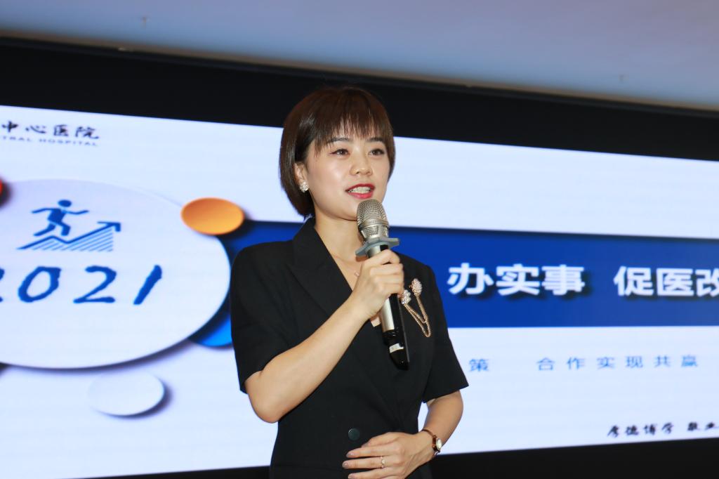 宣讲环节中,两位宣讲员分别以《精准把握公立医院高质量发展核心竞争力》《学党史办实事促医改政策解读》向参会人员宣讲医院学科建设和人才培养的重要性,使大家更准确理解高质量发展的概念和内涵。通过对医保政策的解读,使大家了解这一政策对医院以及患者带来实实在在的好处,以及对医院今后发展带来的好处。