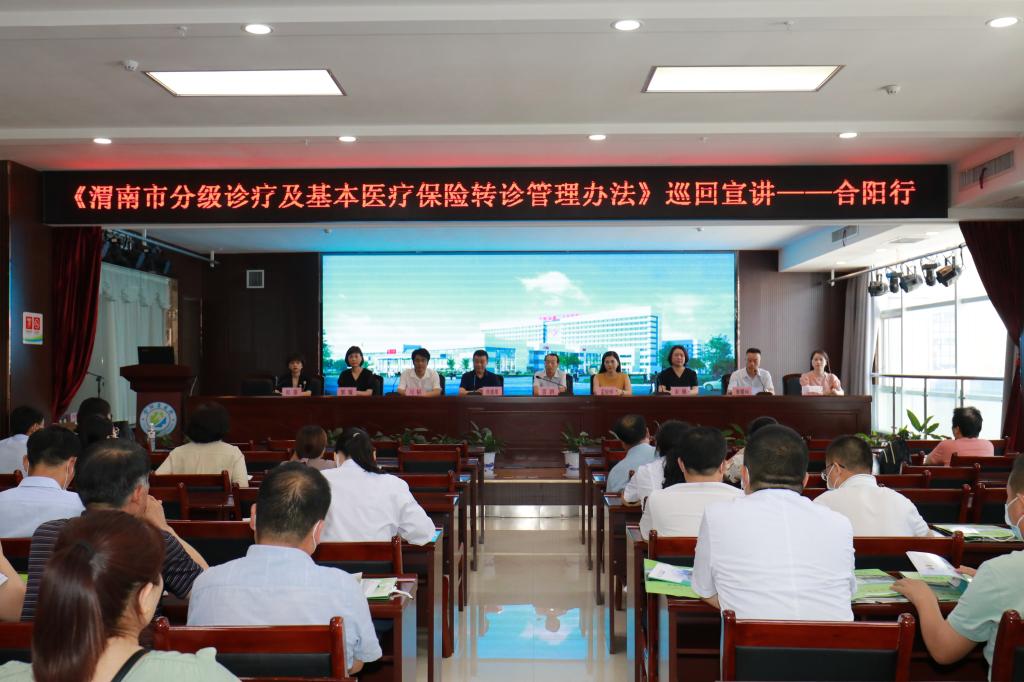 为稳步推进分级诊疗制度落实落细,由渭南市卫健委主办,乐鱼手机站入口承办成立的《渭南市分级诊疗及基本医疗保险转诊管理办法》宣讲团,于6月29日,30日分别走进澄城、合阳、蒲城、白水四县为当地医疗机构人员进行分级诊疗相关政策宣讲。院长张进社、纪委书记张建实、主管领导焦建雄、分级诊疗办、宣传科、外联办等部门参加此次活动。