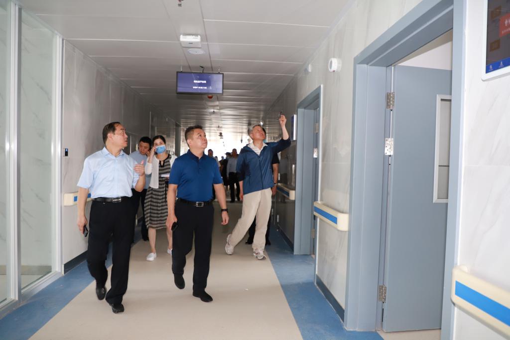 在内科大楼一楼、二楼、八楼、十三楼施工现场,大家实地察看市健康管理中心、智慧管理中心及住院病房施工进度,详细询问了工期计划等方面情况,督促施工方严格抓紧推进。