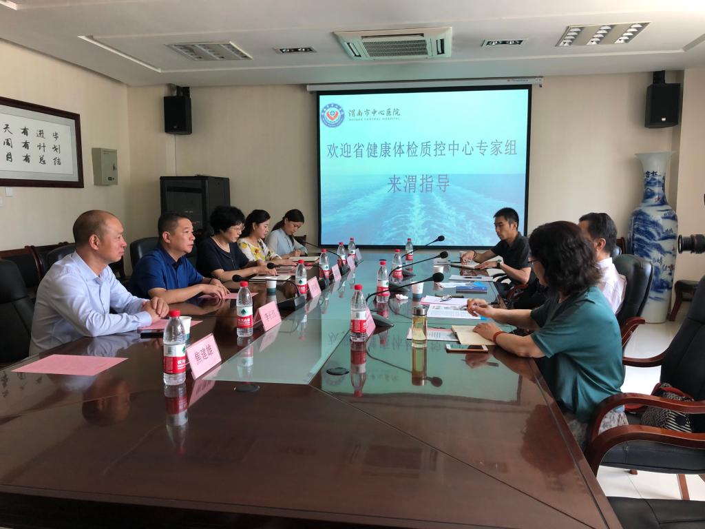 7月8日下午,陕西省健康体检质控中心主任马茂、副主任张晓燕、专家成员王沛侠一行3人,对我市健康体检行业质控情况进行督导,并走进渭南市健康管理中心现场指导。市中心医院党委书记张荣岗,副院长黄慧玲,副院长、市健康体检质控中心常务副主任李长江及渭南市健康管理中心主要成员参加会议。