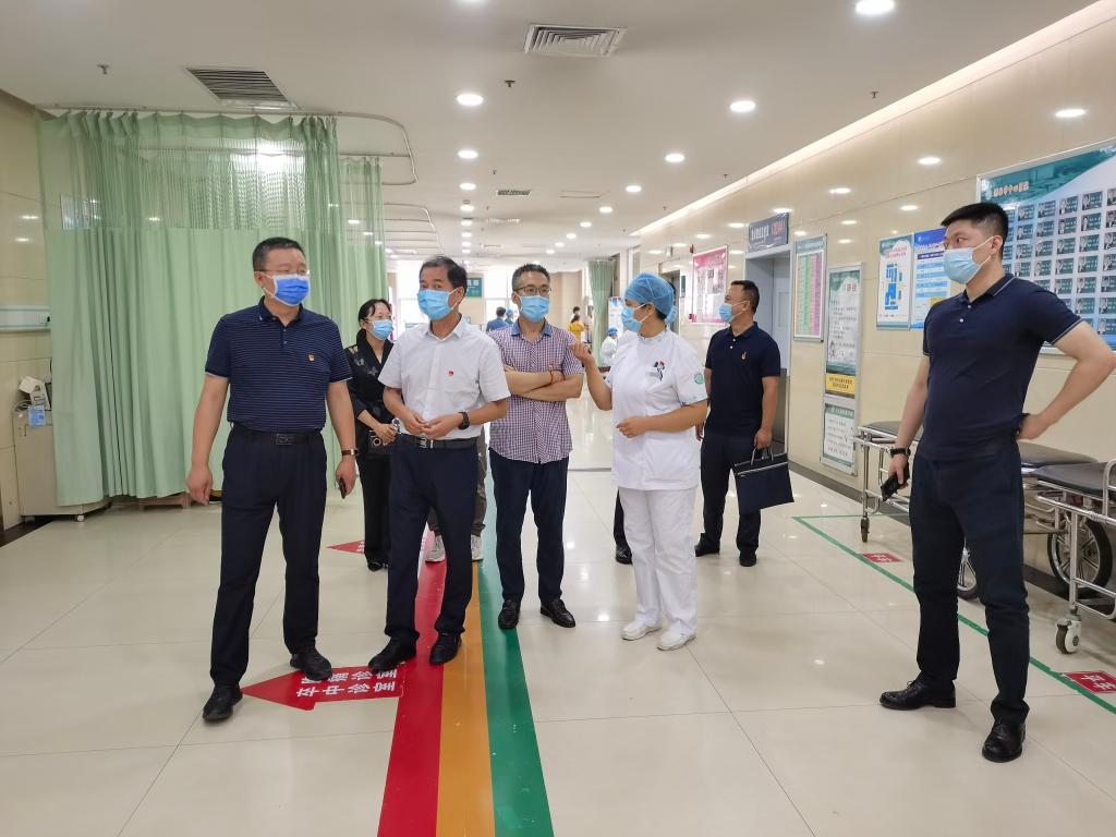 检查组一行检查了核酸采集处、预检分诊、急诊、门诊等处,询问了就诊流程,查看了医院近期防控措施落实情况。